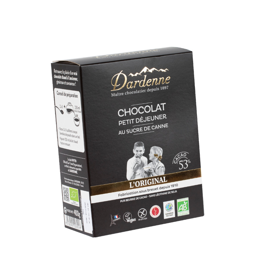 Ludovic Dardenne se lança le défi de créer un chocolat unique au goût délicieux, en lui supprimant tout effet indésirable sur la digestion. Aidé de Paul Sabatier (prix Nobel de chimie), il parvient à élaborer un processus de fabrication particulier en 1910. le chocolat sous Brevet est né et permet aux personnes sensibles de consommer du chocolat sans modération !