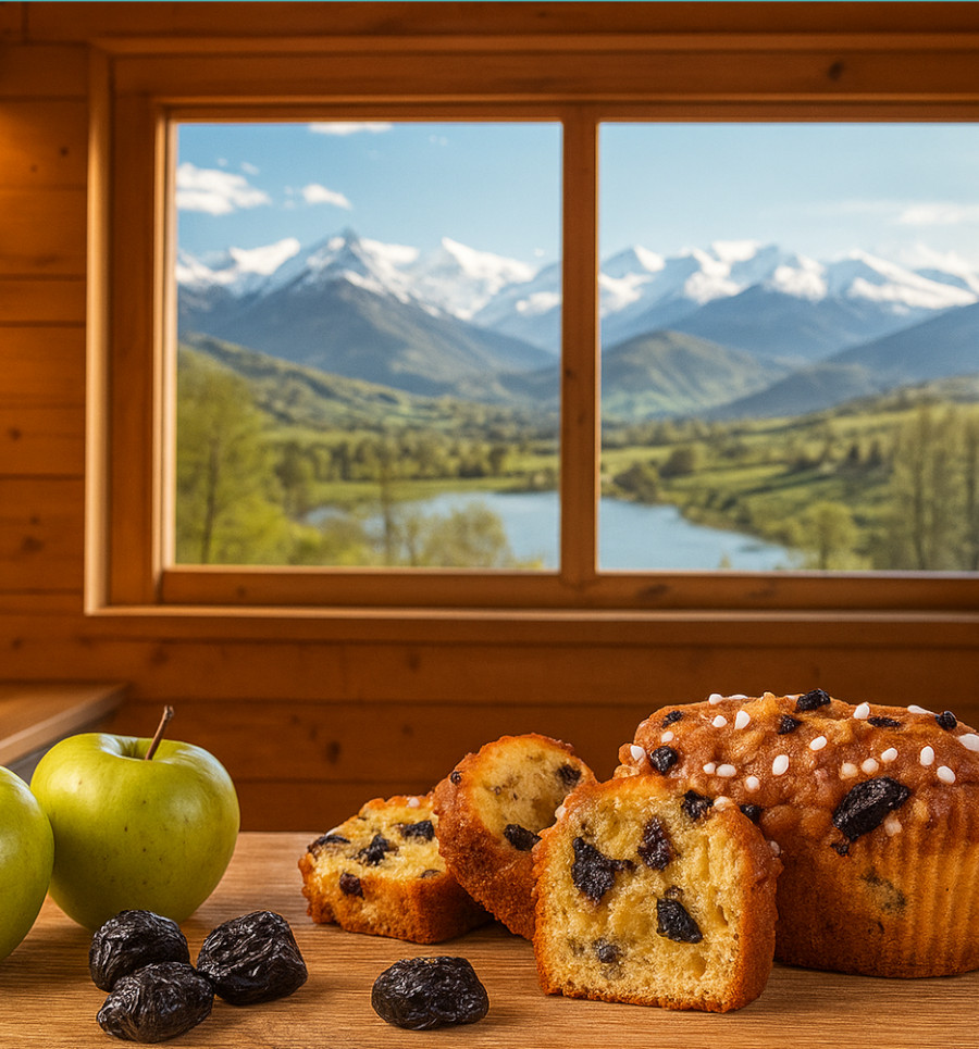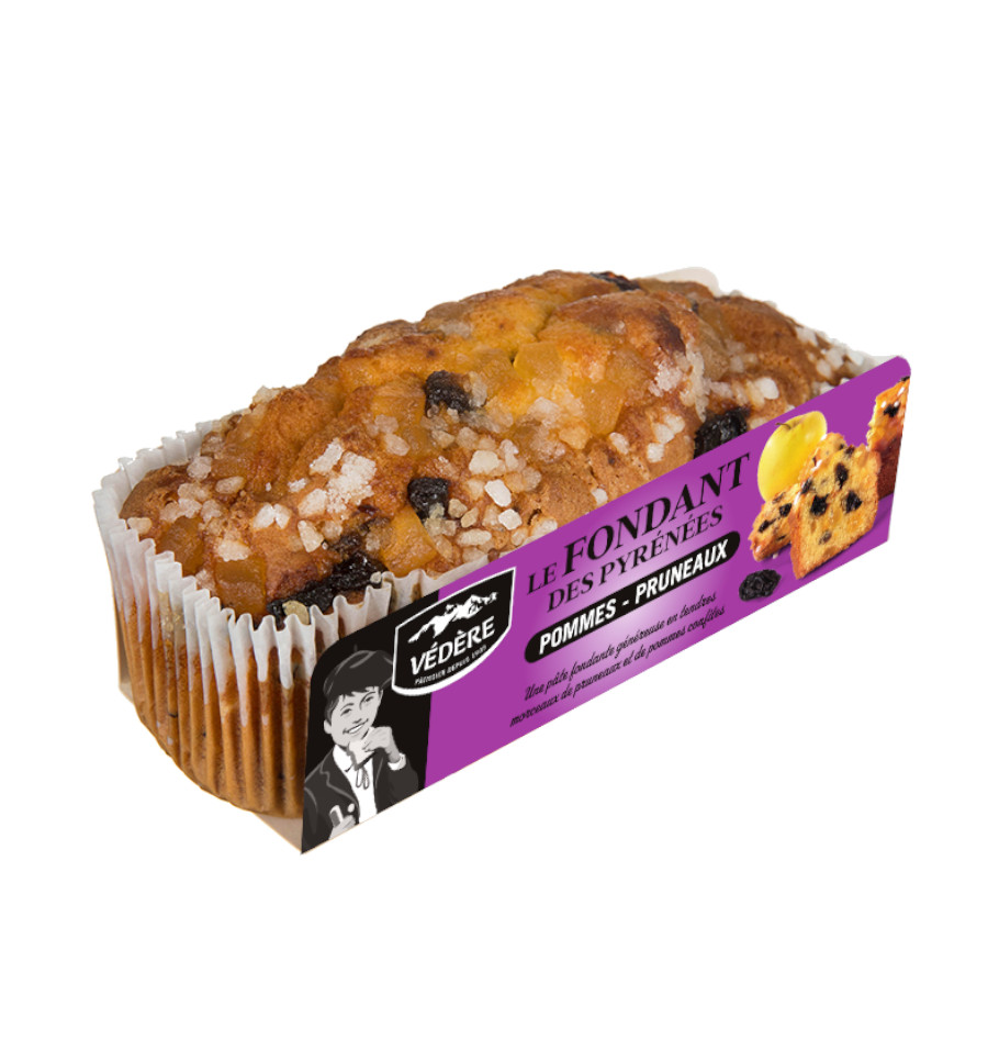 OEUFS entiers 18%, sucre, farine de BLE, pruneaux 8% (pruneaux, dextrose, conservateur : E202), pommes confites 6% (pommes, sirop de glucose-fructose, sucre, correcteur d’acidité :E330, conservateur : E202, arôme) amidon de BLE, huile de colza, matières grasses végétale (huile de palme et colza, émulsifiants : lécithine de soja, E471, sel sucre, acidifiant : E330, arômes), LAIT, armagnac, amidon modifié, LAIT écrémé en poudre, poudres à lever (E450, E500, E341), sirop de sucre inverti, émulsifiants (E472b, E475, E472a), sel, arômes, épaississants (E461, E401), colorants (E160a, E101, extraits végétaux).