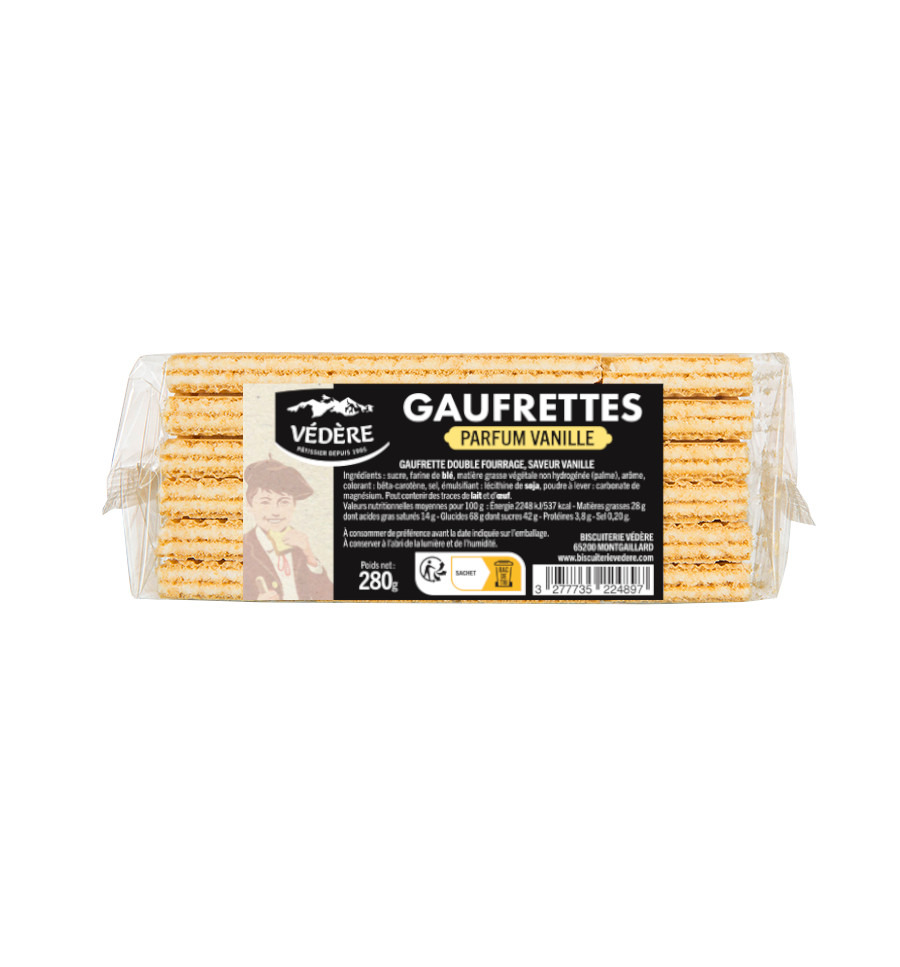 Les Gaufrettes Vanille sont des biscuits à croquer seul, entre amis ou en famille. Constitués d’un double fourrage savoureux, elles accompagneront avec merveille un goûter gourmand !