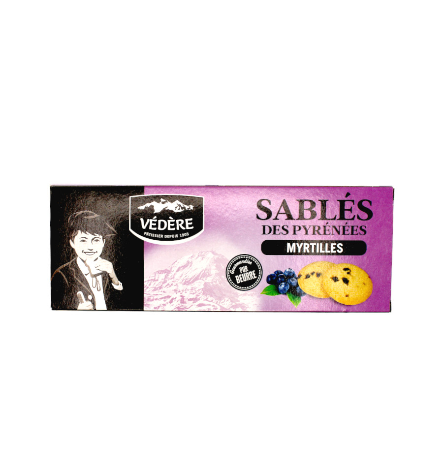 Farine de BLE, sucre, OEUFS, BEURRE 21%, myrtilles 4% (myrtille, sirop de glucose – fructose, dextrose, arôme naturel, correcteur d’acidité : acide citrique), poudre à lever (carbonate acide de sodium, citrate de sodium), sel, arôme naturel de myrtille.